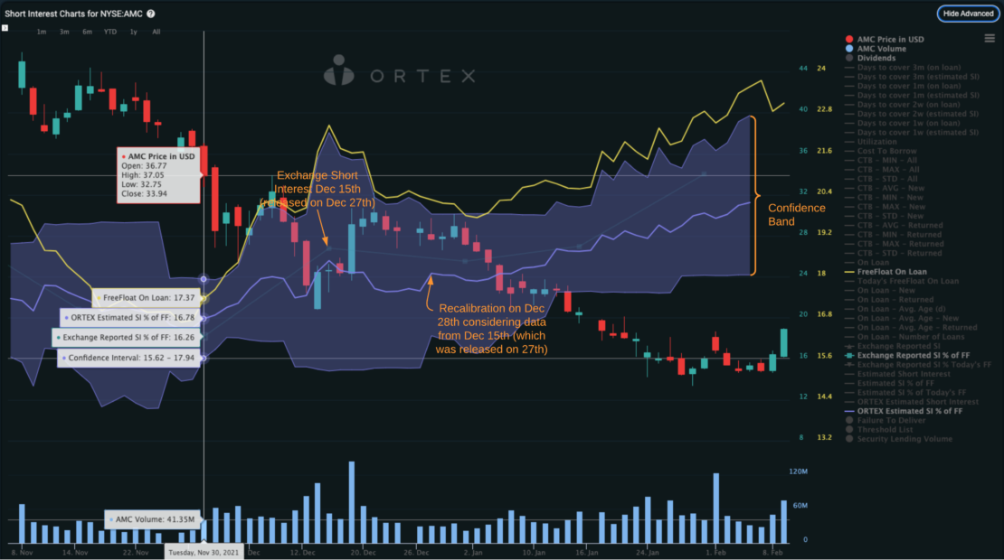 New ORTEX Estimated Short Interest example for AMC