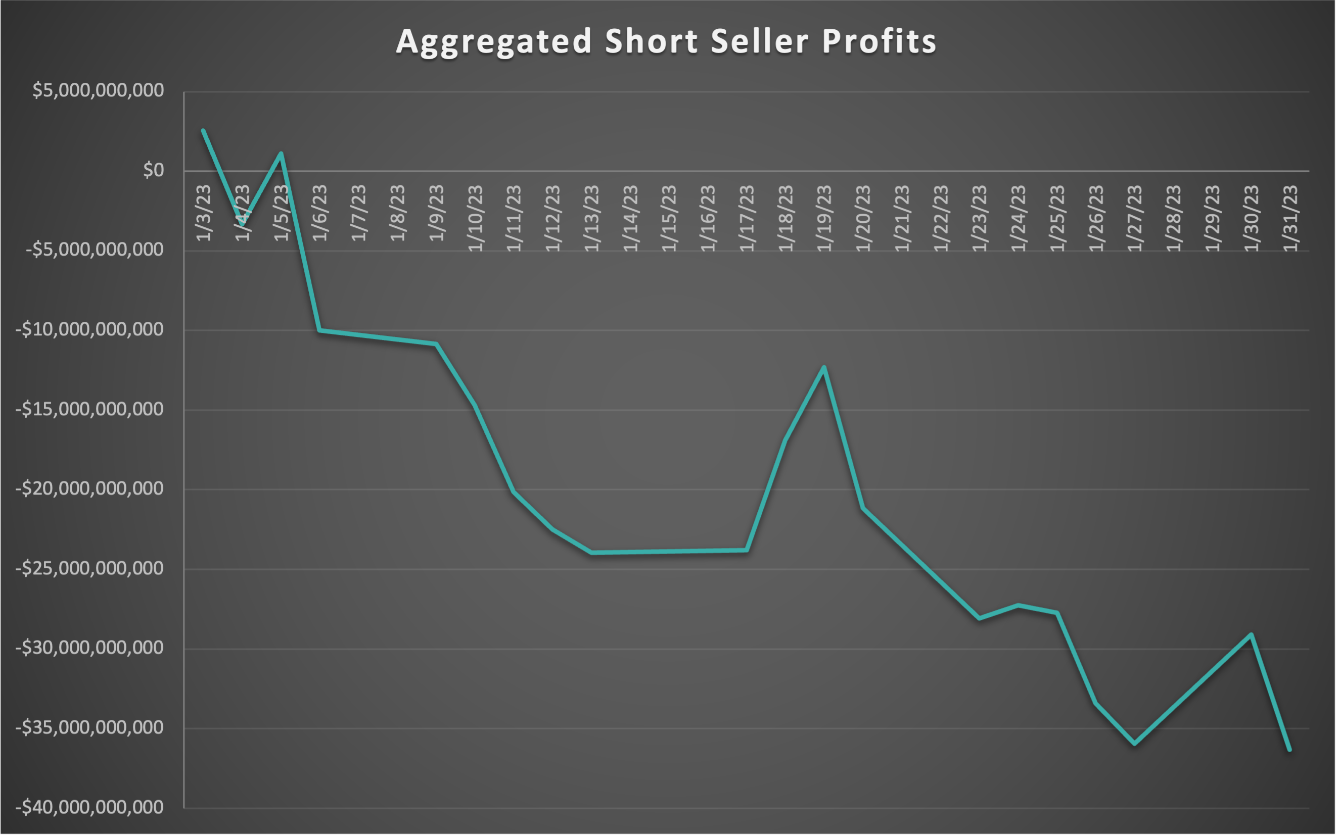After delivering billions in profits to short sellers in 2022, Tesla (Nasdaq: TSLA) stock enjoyed a massive rebound in January that led to heavy losses for the bears. Shares of the electric vehicle (EV) giant surged by 41% last month while short interest was simultaneously trending higher, resulting in $4.5 billion in losses for shorts. That was the biggest loss for short-sellers in January by a long shot.